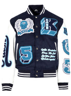KASH CHENILLE PRINT VARSITY JACKET - NAVY